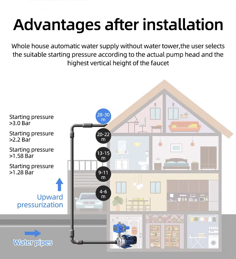 স্বয়ংক্রিয় পাম্প নিয়ামক জল পাম্প ইলেকট্রনিক চাপ নিয়ামক স্বয়ংক্রিয় জল পাম্প জটিল ইনস্টলেশন প্রতিস্থাপন করতে পারেন. এটিতে স্থিতিশীল কর্মক্ষমতা, কম রক্ষণাবেক্ষণ এবং দীর্ঘ জীবনকালের বৈশিষ্ট্য রয়েছে।