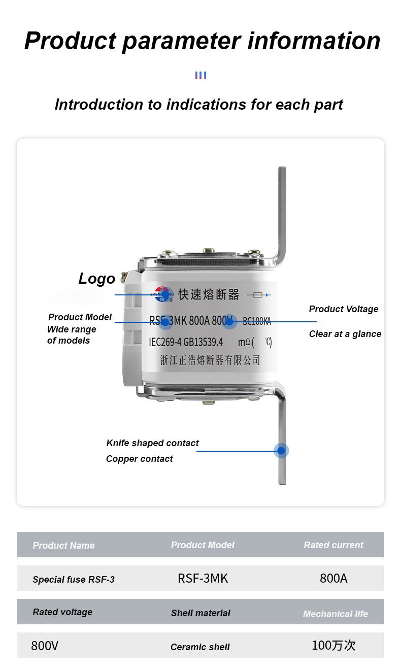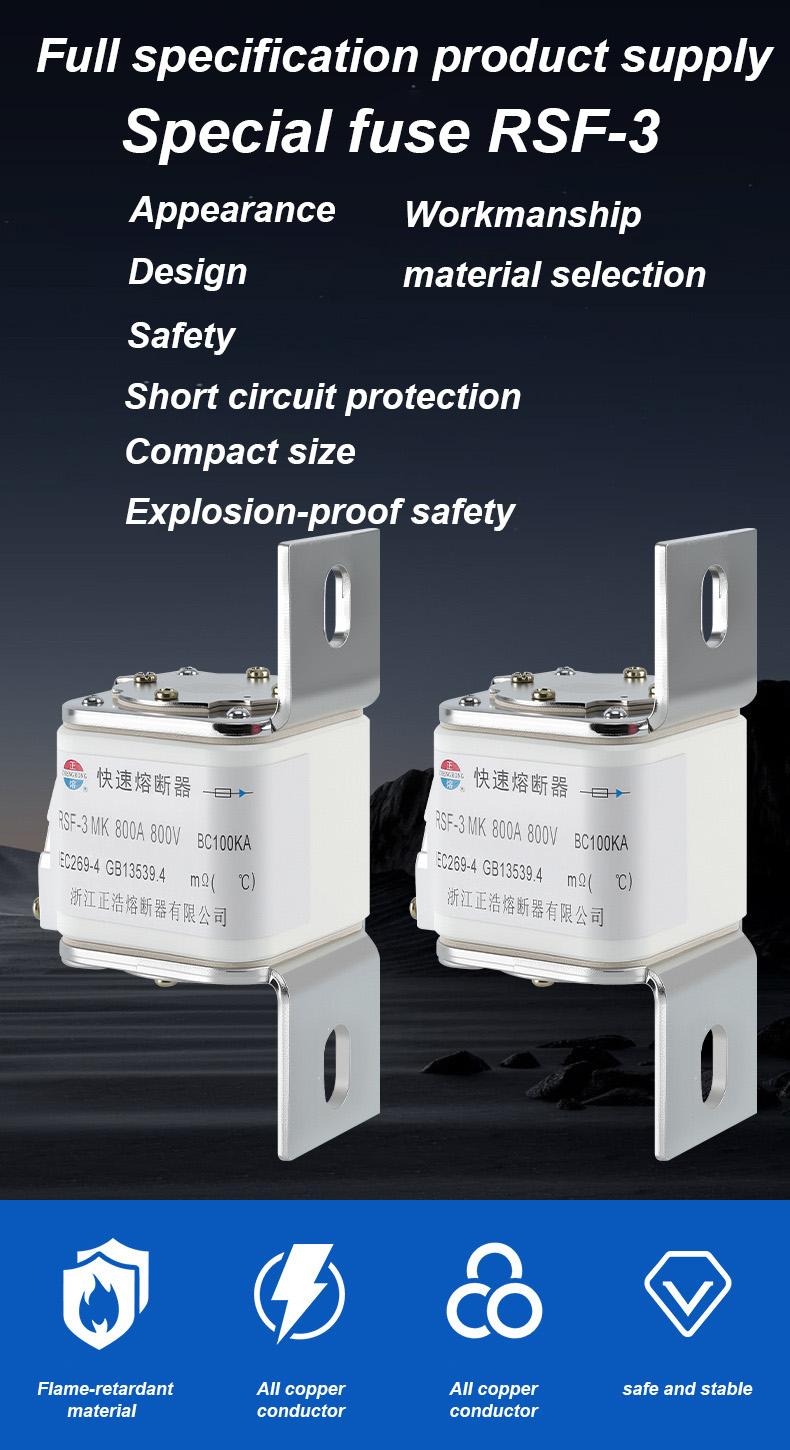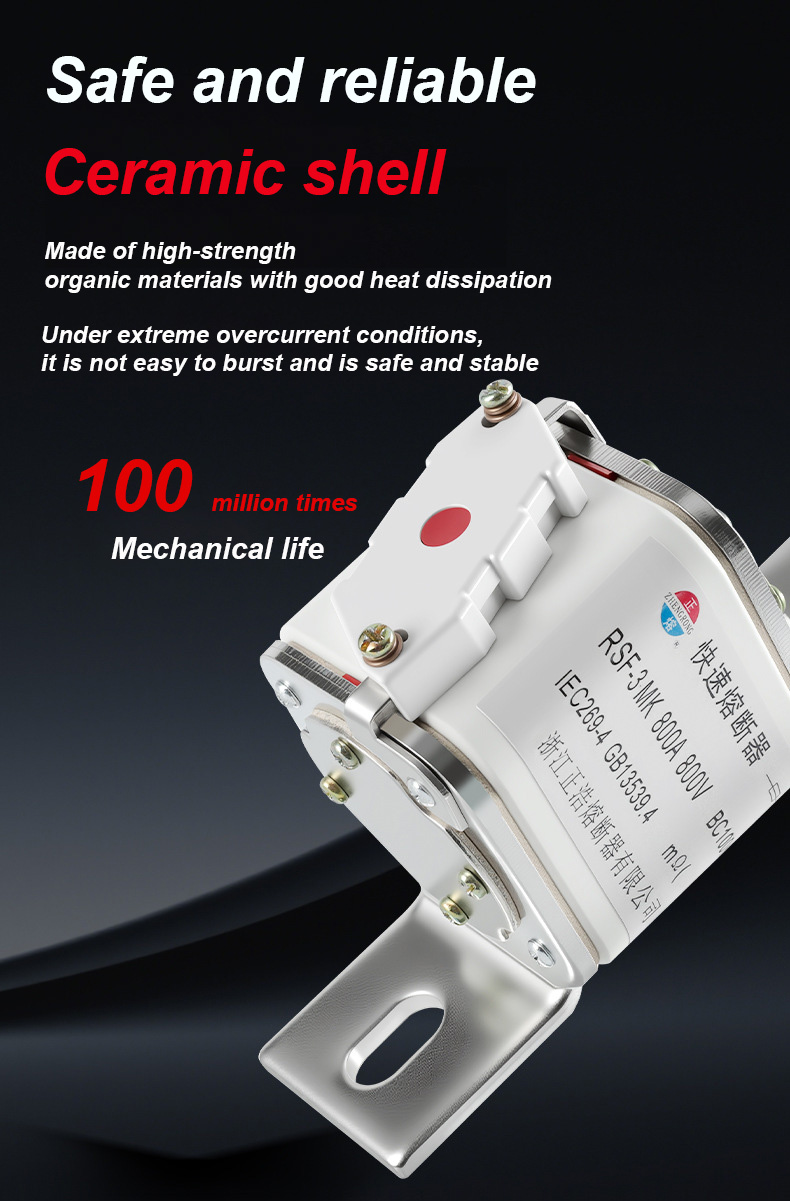 RSF-3MK 800V-800A BC100KA Fuse Links হল একটি উচ্চ-ক্ষমতাসম্পন্ন শিল্প সার্কিট ব্রেকার যা উচ্চ-শক্তি বৈদ্যুতিক সুরক্ষা পরিস্থিতিগুলির জন্য উপযুক্ত। RSF-3MK 800V-800A BC100KA ফিউজ লিঙ্ক